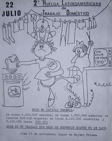 22 de Julio: Día Internacional del Trabajo Doméstico. Declarado en 1983, durante el Segundo Encuentro Feminista Latinoamericano y del Caribe, con el objetivo de contribuir a la visibilización y el reconocimiento de la labor de las mujeres dentro de los hogares, en relación a las actividades comprendidas como tareas de cuidados.