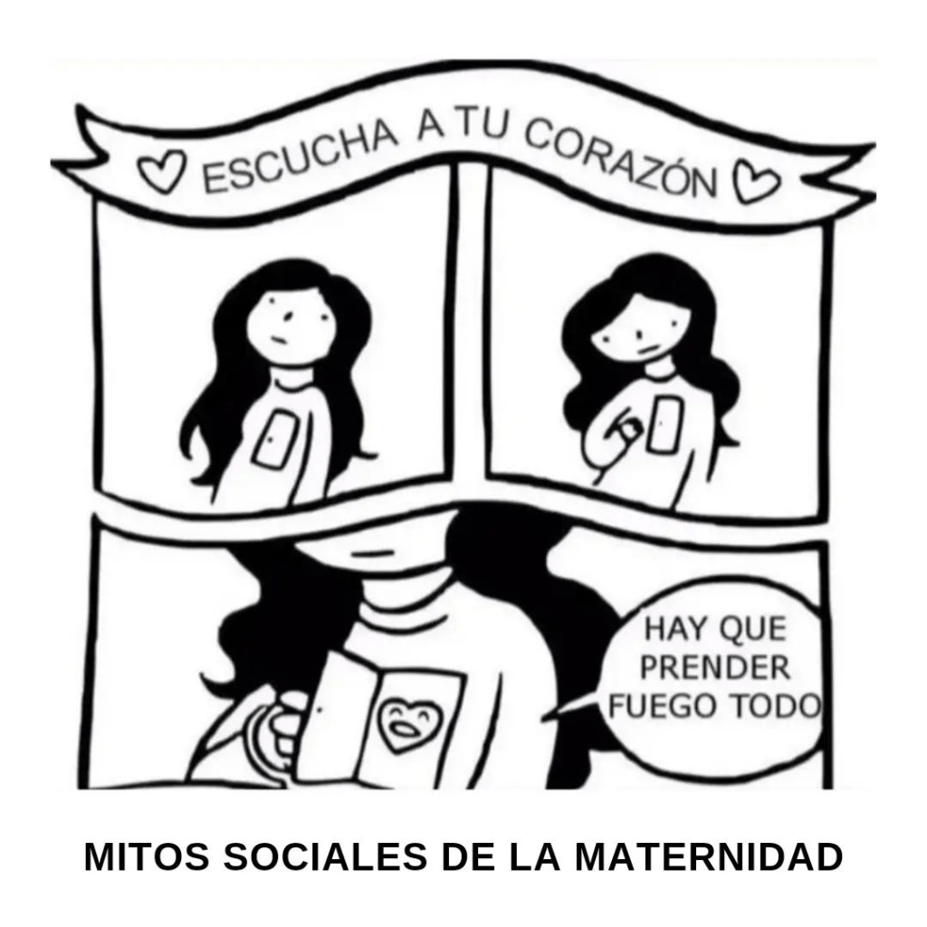 Los MITOS SOCIALES DE LA MATERNIDAD son aquellos que producen y reproducen el universo de significaciones imaginarias constitutivas, que operan ordenando valores y prácticas, instituyendo realidades y organizando las relaciones interpersonales. Según Ana María Fernández, se estructuran a partir la ILUSIÓN DE NATURALIDAD (enfoque naturalista de la maternidad que exalta las posibilidades biológicas, excluyendo variaciones subjetivas, procesos psíquicos, condicionantes socioculturales e históricos) y la ILUSIÓN DE ATEMPORALIDAD (directamente ligado con la anterior, obtura la consideración de las transformaciones epocales). Ejemplo de ello sería la construcción del instinto materno, una especie de caja de herramientas innata, un saber-hacer heredado genéticamente que guiaría -siempre- a la madre para encontrar las conductas adecuadas para resolver -todas- las cuestiones referidas a la crianza de lxs hijxs, convirtiéndose así en irremplazable, infalible e incondicional (Fernández, 1993).