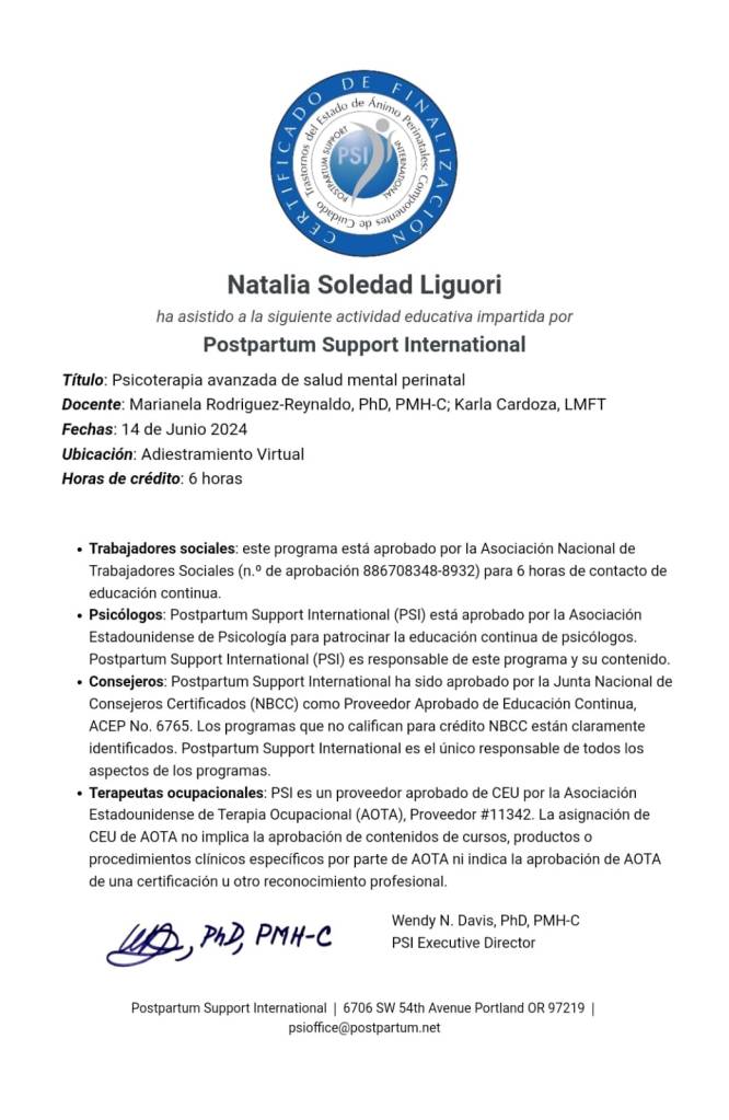 Continuación del entrenamiento de Postpartum Support International: siempre un inmenso placer encontrarse a compartir con colegas de diversas latitudes, apasionadas como una en este período vital. ¡Gracias PSI por la oportunidad!