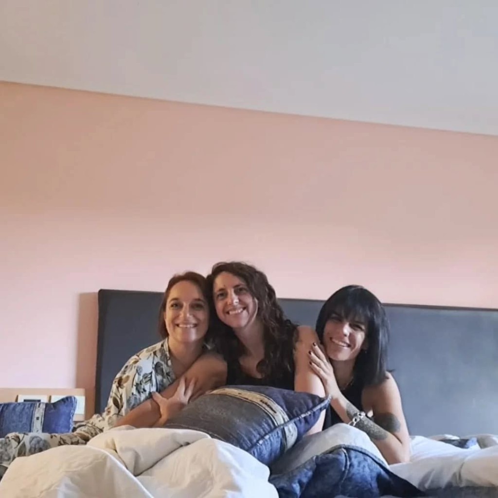 Desde hace algunos años, está viviendo en Córdoba; es así que nos vemos bastante menos de lo que quisiéramos por las distancias. Pero hace muy poquito nos encontramos en el Congreso Nacional de Duelo en Rafaela, Santa Fe. Nos reímos, lloramos, nos abrazamos. Hicimos por primera vez una ‘pijamada’ las tres, con Caro Mora. Nos sostuvimos y acompañamos.