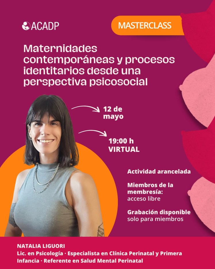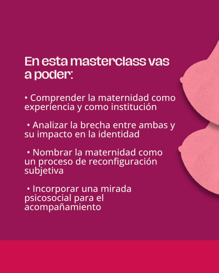 En esta masterclass vamos a poner en palabras los procesos identitarios en las maternidades actuales y sumar herramientas para el acompañamiento profesional.